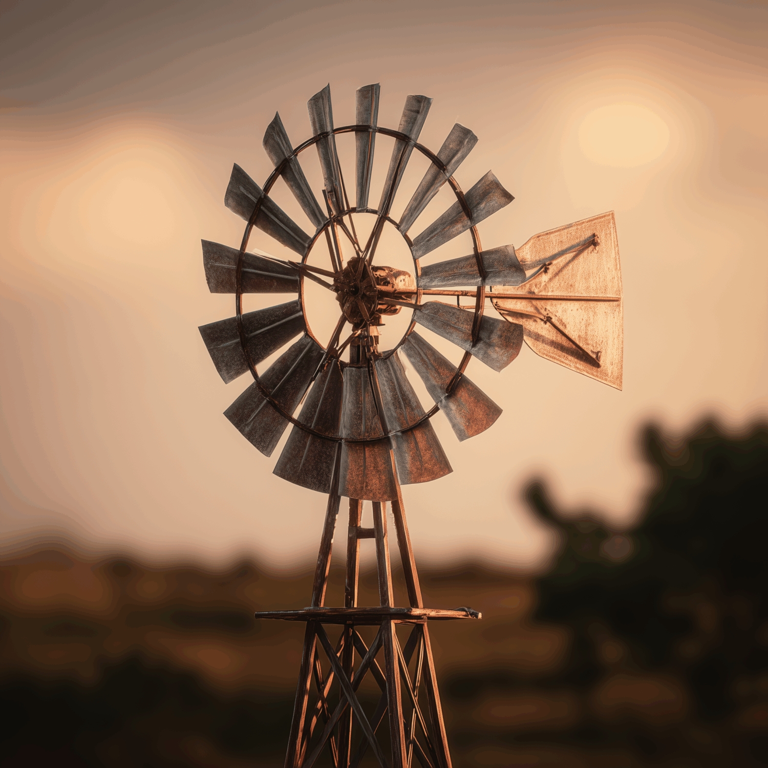 The functional, striking, rustic windmill that is original to the property serves as a scenic focal point for the ranch.